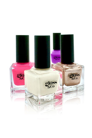 • Eight Free. Our nail colours never contain the toxins formaldehyde, tosylamide formaldehyde resin, dibutyl phthalate (DBP), toluene,  camphor, ethyl tosylamide, triphenyl phosphate (TPHP) or xylene.